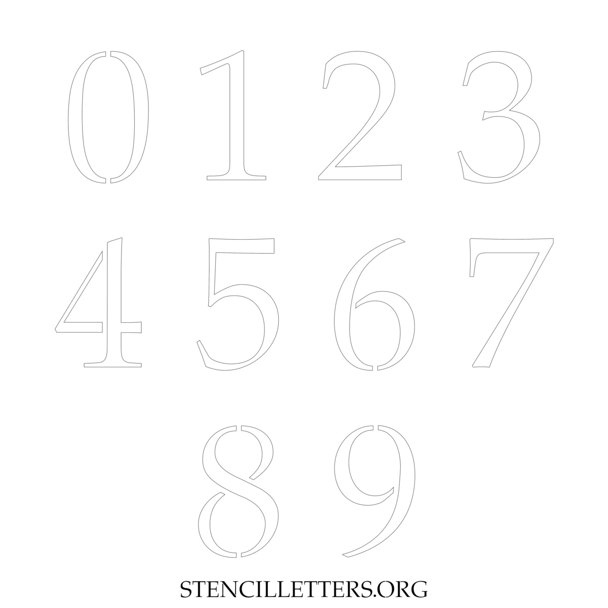Stencil Design 16 Elegant. Print these free numbers stencils and make your own DIY templates for your stenciling projects. Available in high resolution printable sizes: 4 Inch, 5 Inch, 6 Inch, 7 Inch, 8 Inch, 9 Inch and 10 Inch.
