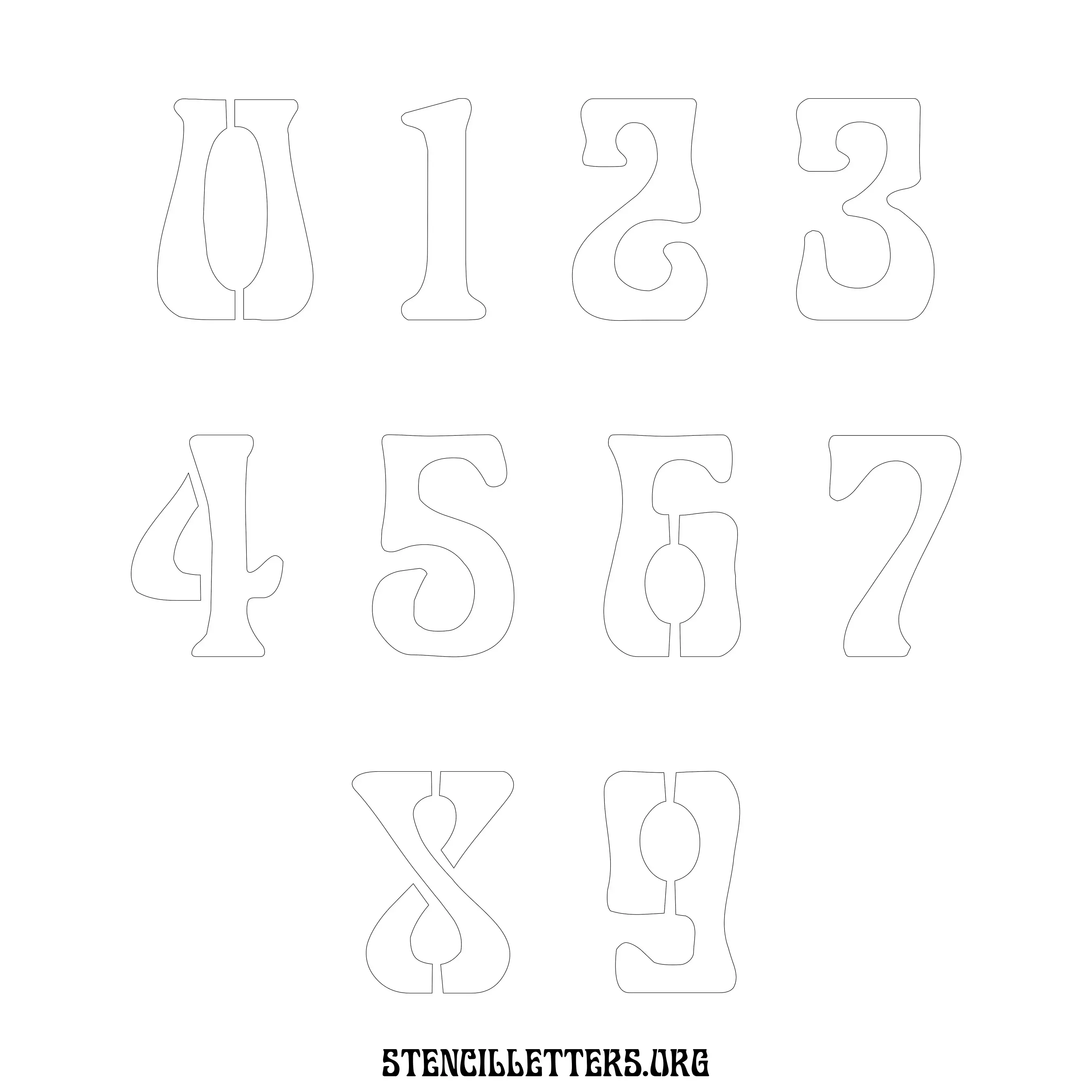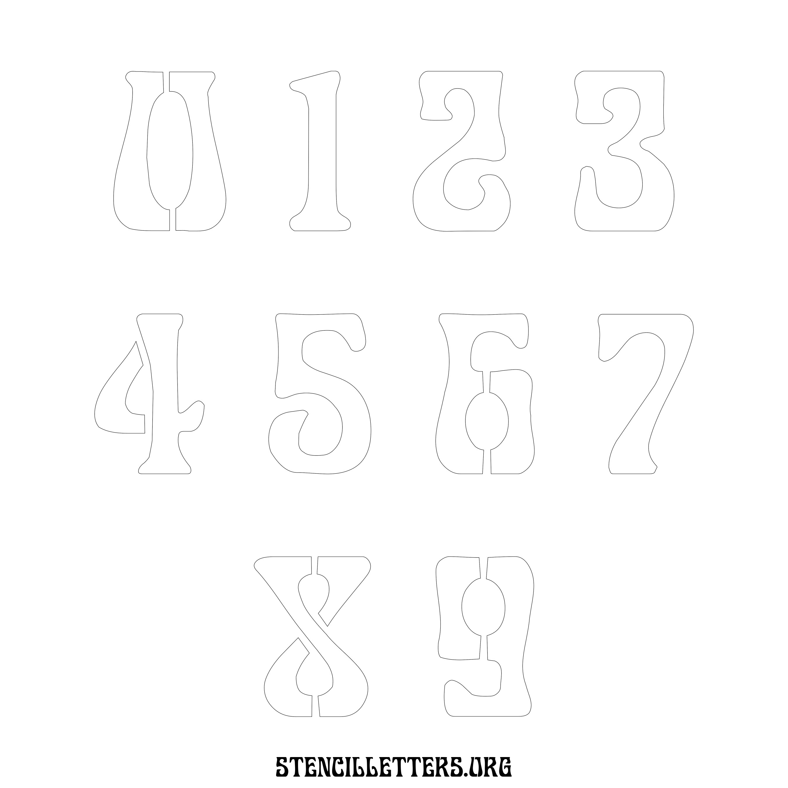 Stencil Design 191 Art Nouveau. Print these free numbers stencils and make your own DIY templates for your stenciling projects. Available in high resolution printable sizes: 4 Inch, 5 Inch, 6 Inch, 7 Inch, 8 Inch, 9 Inch and 10 Inch.