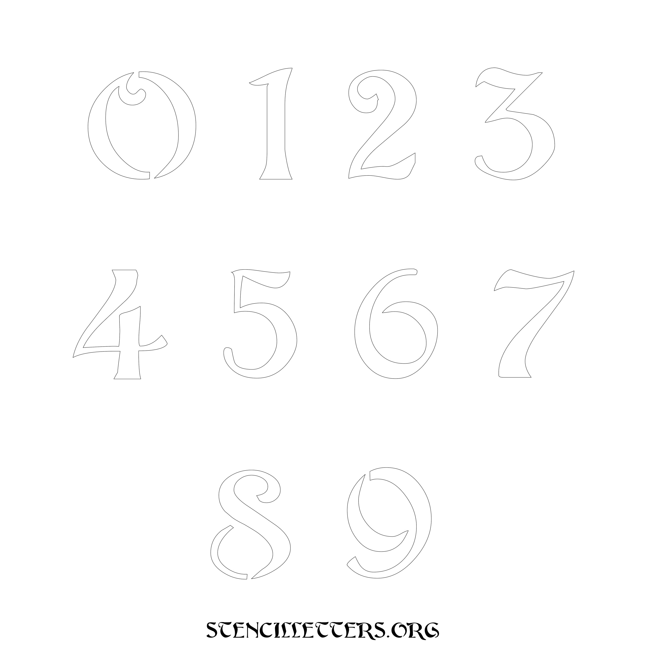 Stencil Design 195 Art Nouveau. Print these free numbers stencils and make your own DIY templates for your stenciling projects. Available in high resolution printable sizes: 4 Inch, 5 Inch, 6 Inch, 7 Inch, 8 Inch, 9 Inch and 10 Inch.
