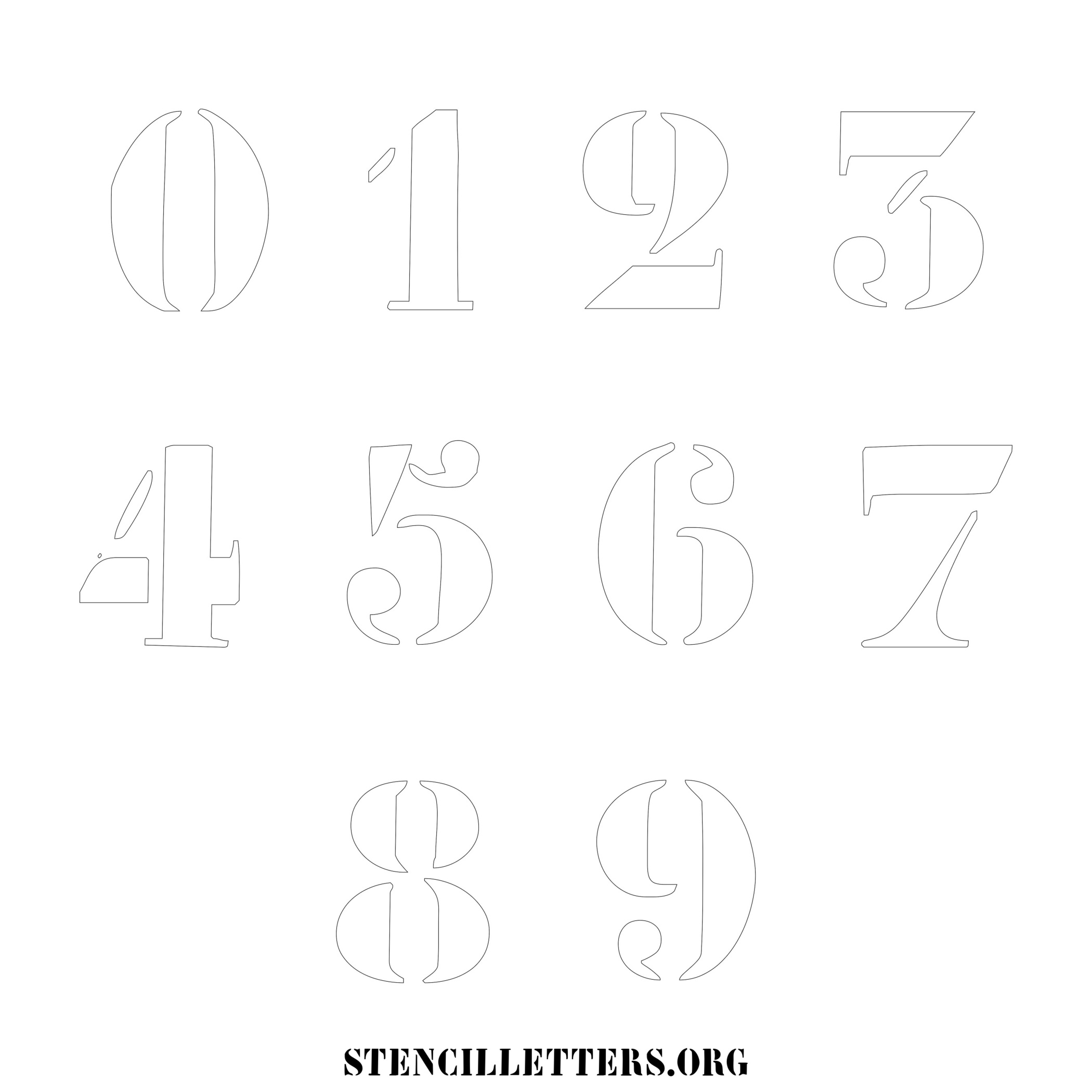 Stencil Design 237 Elegant Artistic. Print these free numbers stencils and make your own DIY templates for your stenciling projects. Available in high resolution printable sizes: 4 Inch, 5 Inch, 6 Inch, 7 Inch, 8 Inch, 9 Inch and 10 Inch.
