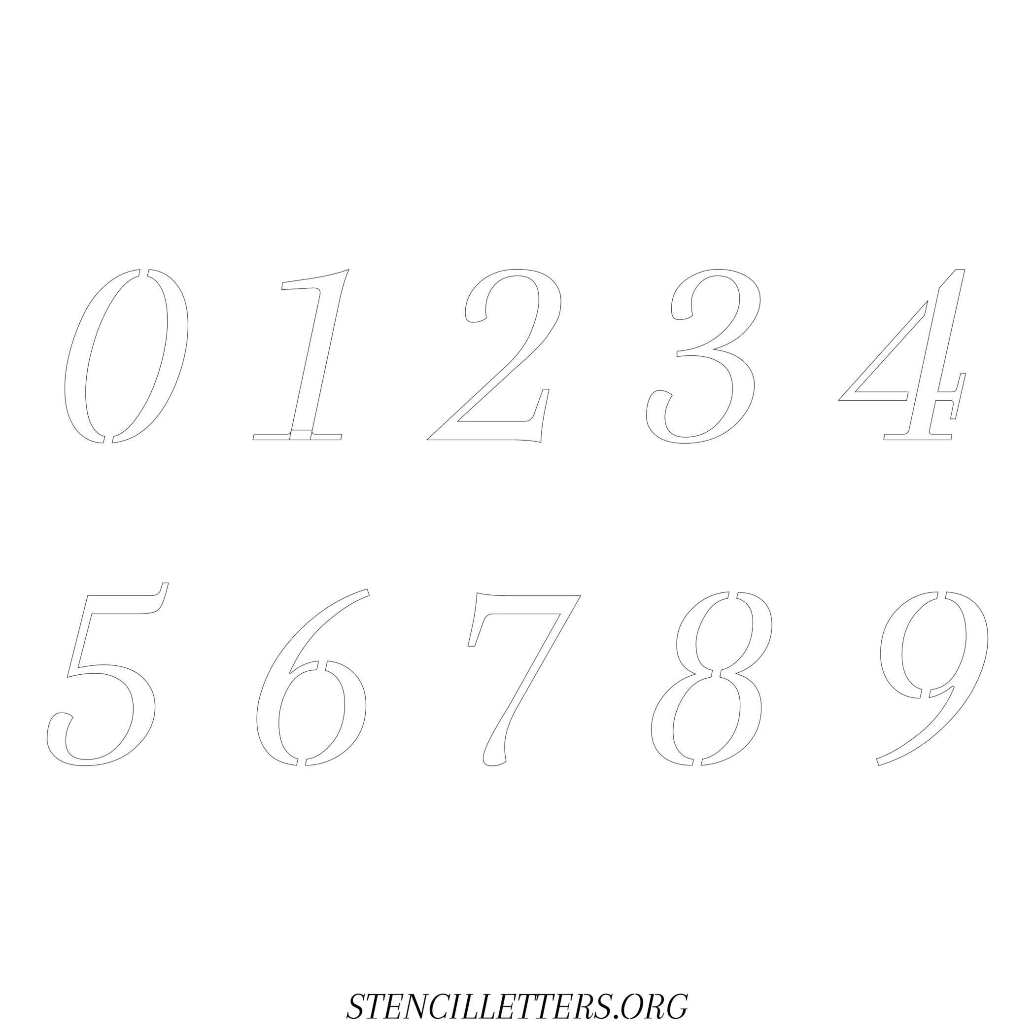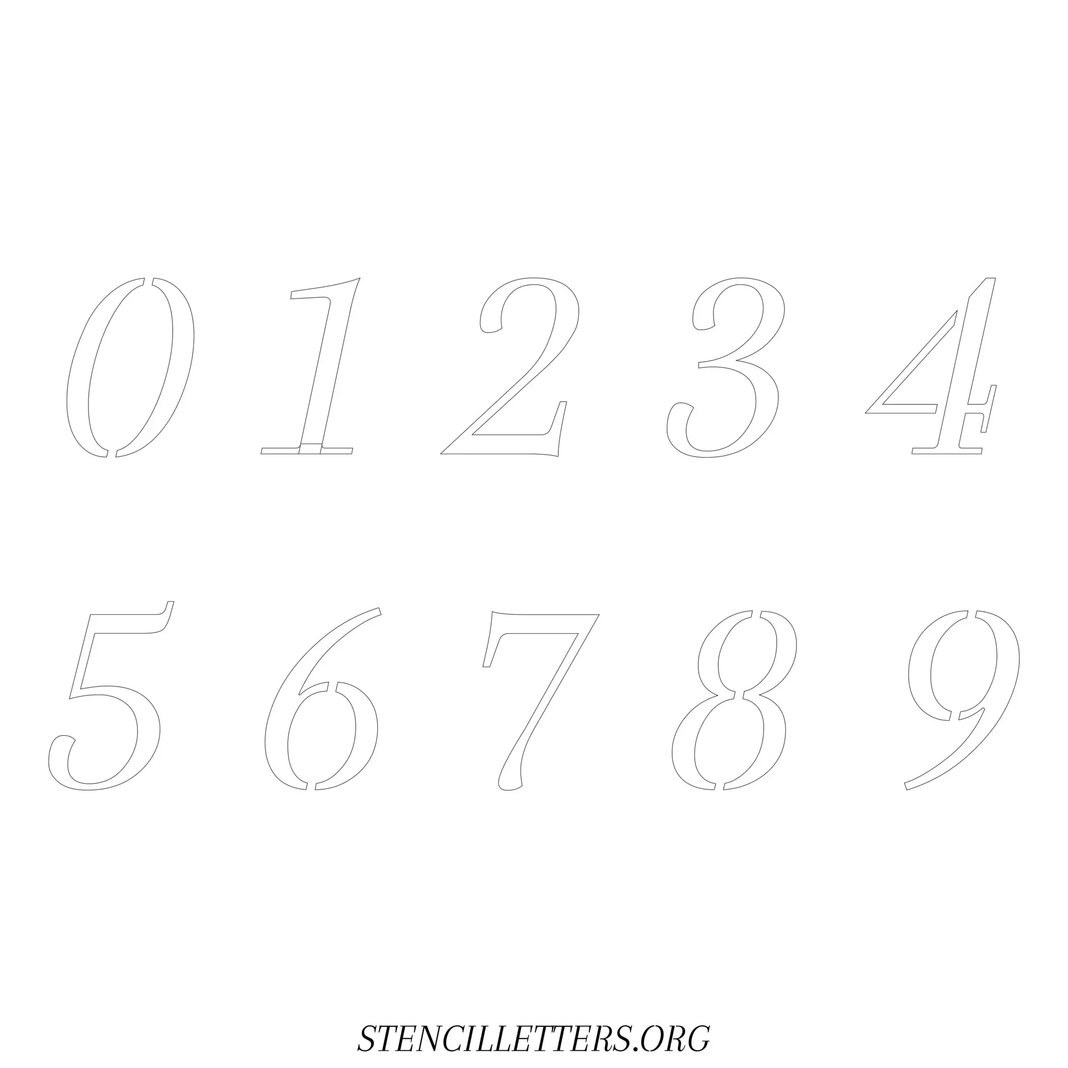 Stencil Design 42 Italic. Print these free numbers stencils and make your own DIY templates for your stenciling projects. Available in high resolution printable sizes: 4 Inch, 5 Inch, 6 Inch, 7 Inch, 8 Inch, 9 Inch and 10 Inch.