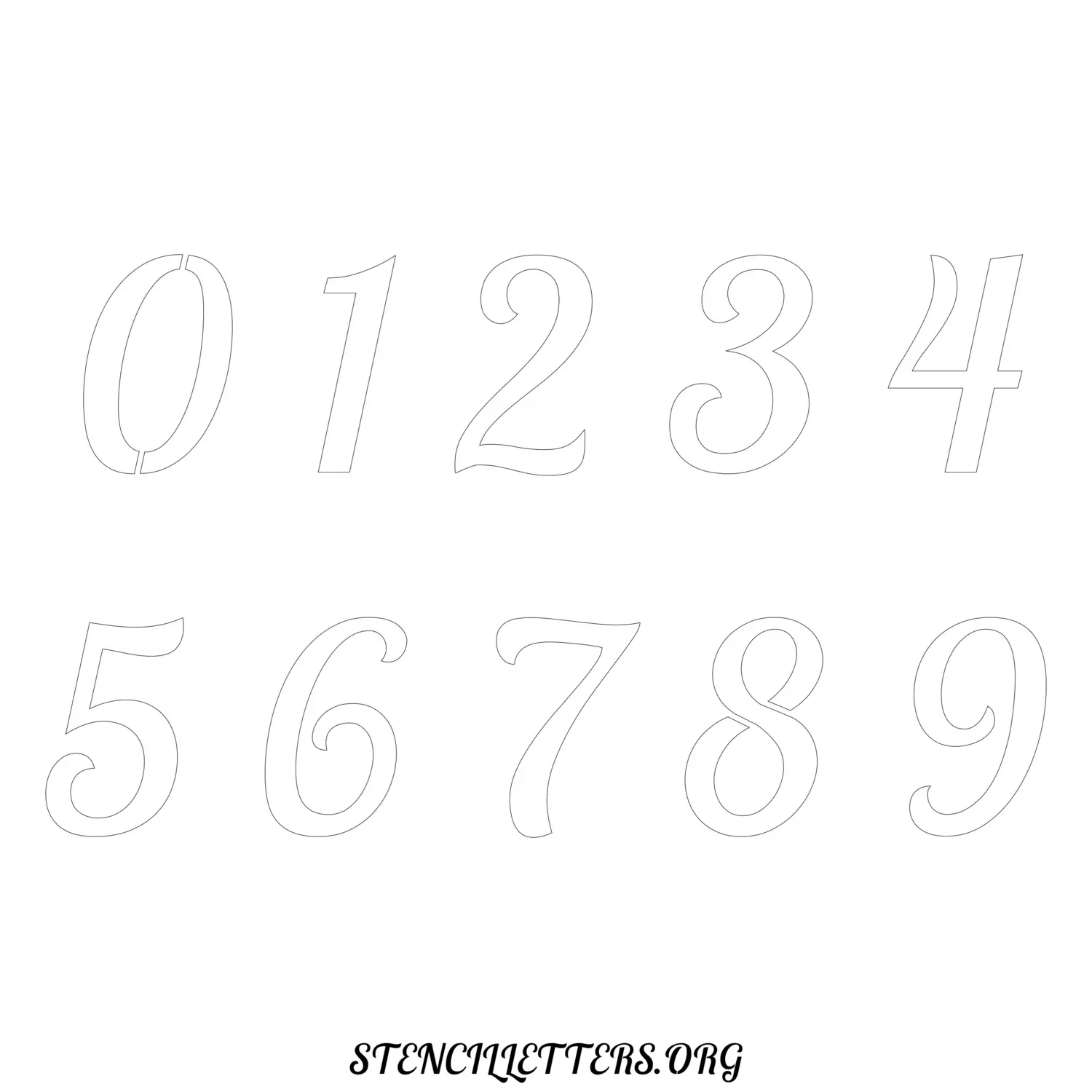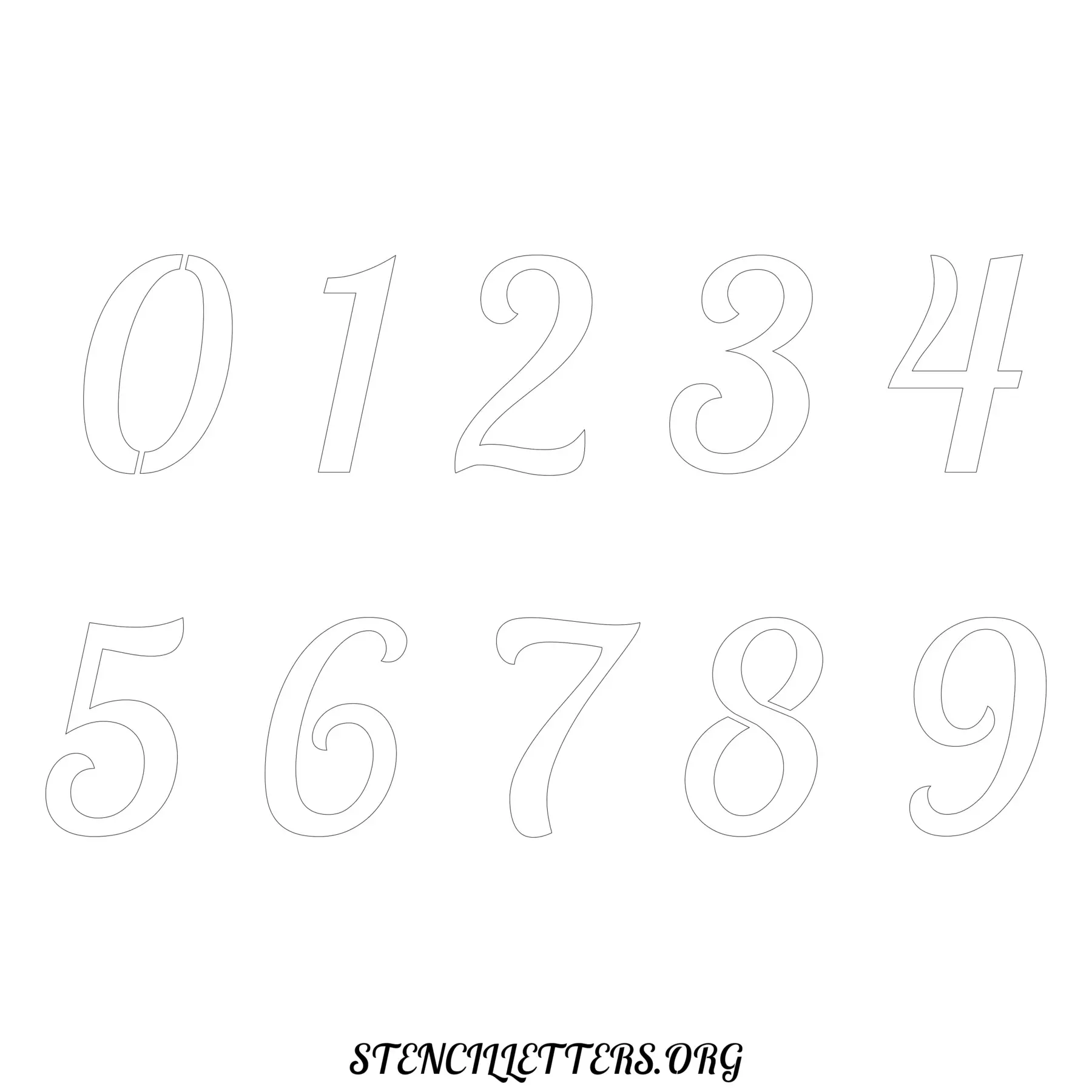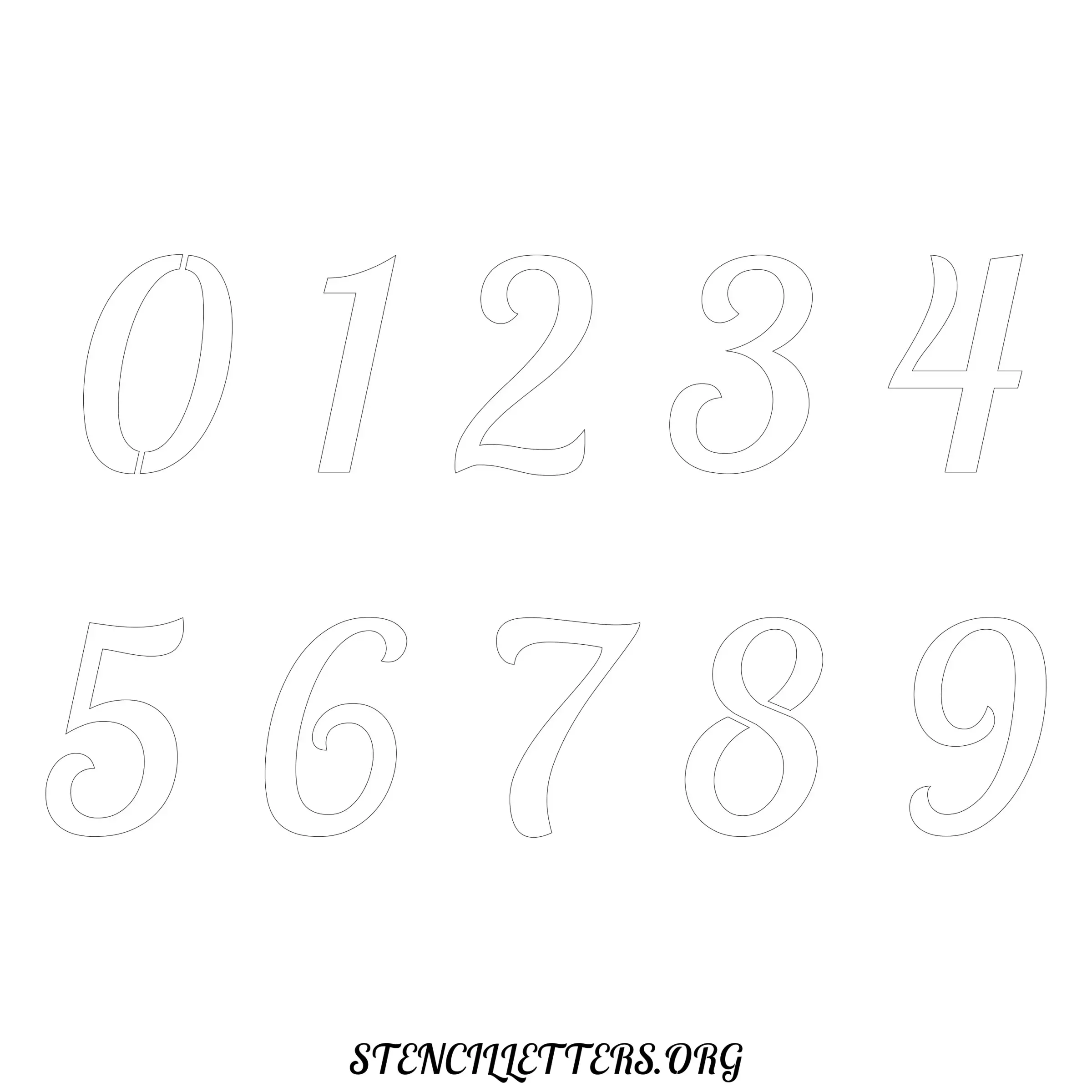 Stencil Design 45 Italic. Print these free numbers stencils and make your own DIY templates for your stenciling projects. Available in high resolution printable sizes: 4 Inch, 5 Inch, 6 Inch, 7 Inch, 8 Inch, 9 Inch and 10 Inch.
