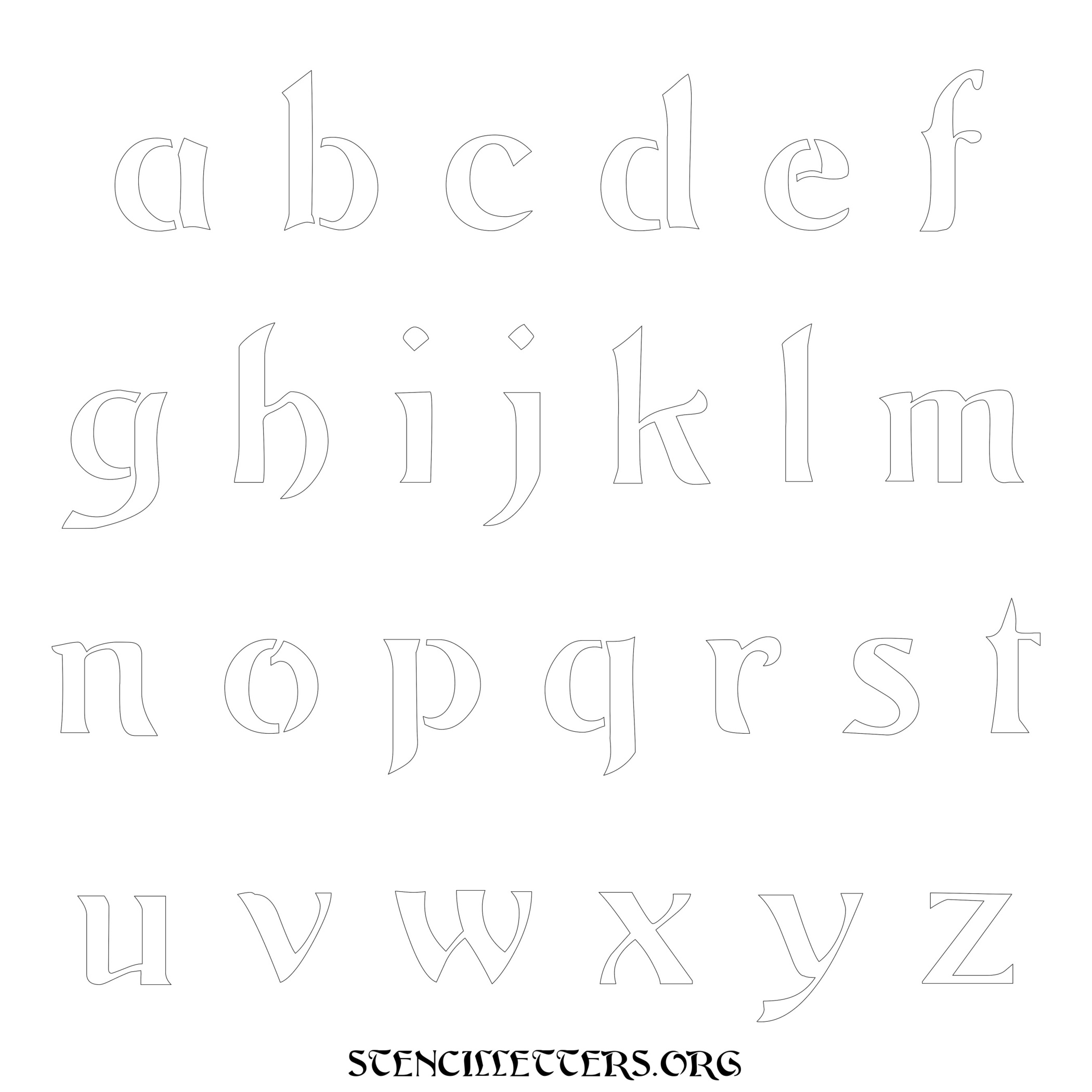 Printable Lowercase Alphabet Stencils - Design 195 Art Nouveau