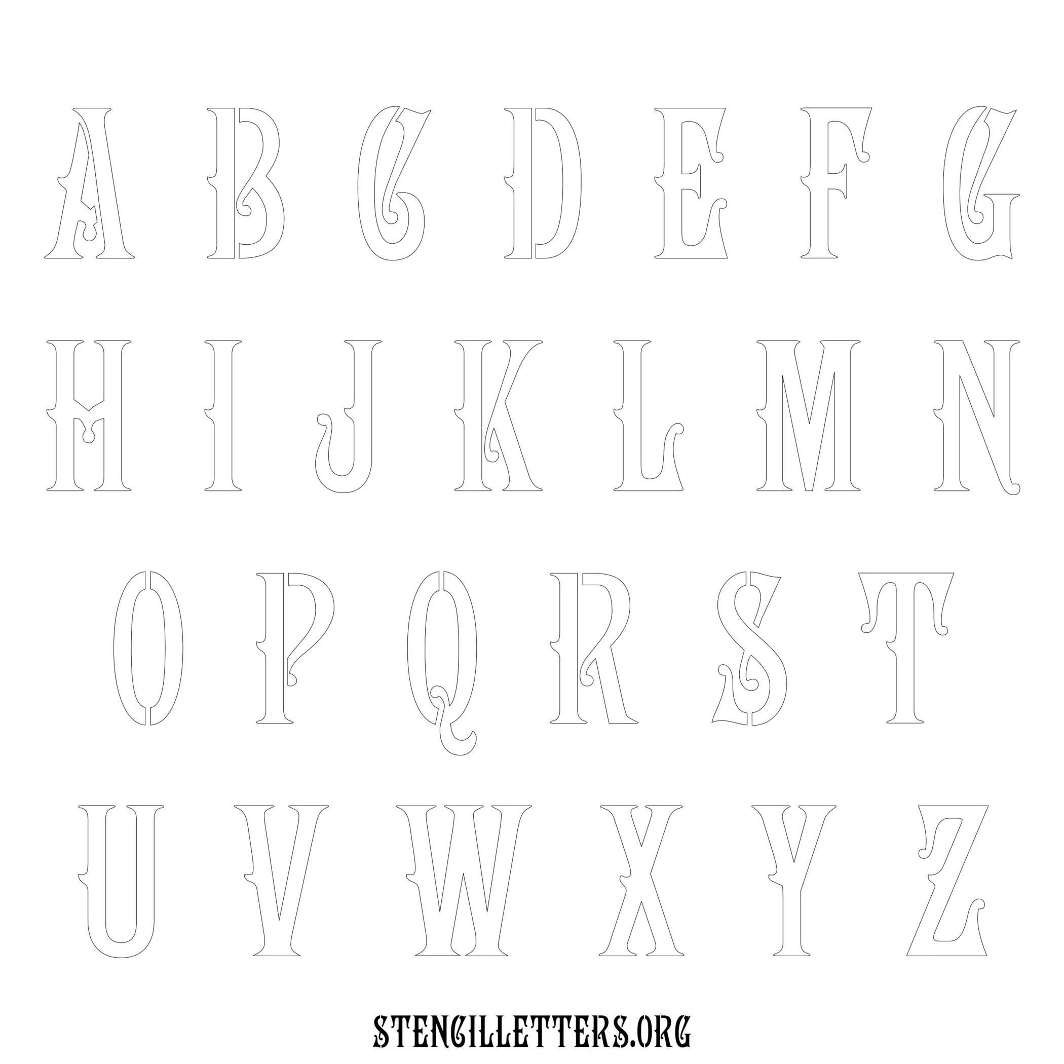 Printable Uppercase Alphabet Stencils - Design 192 Art Nouveau