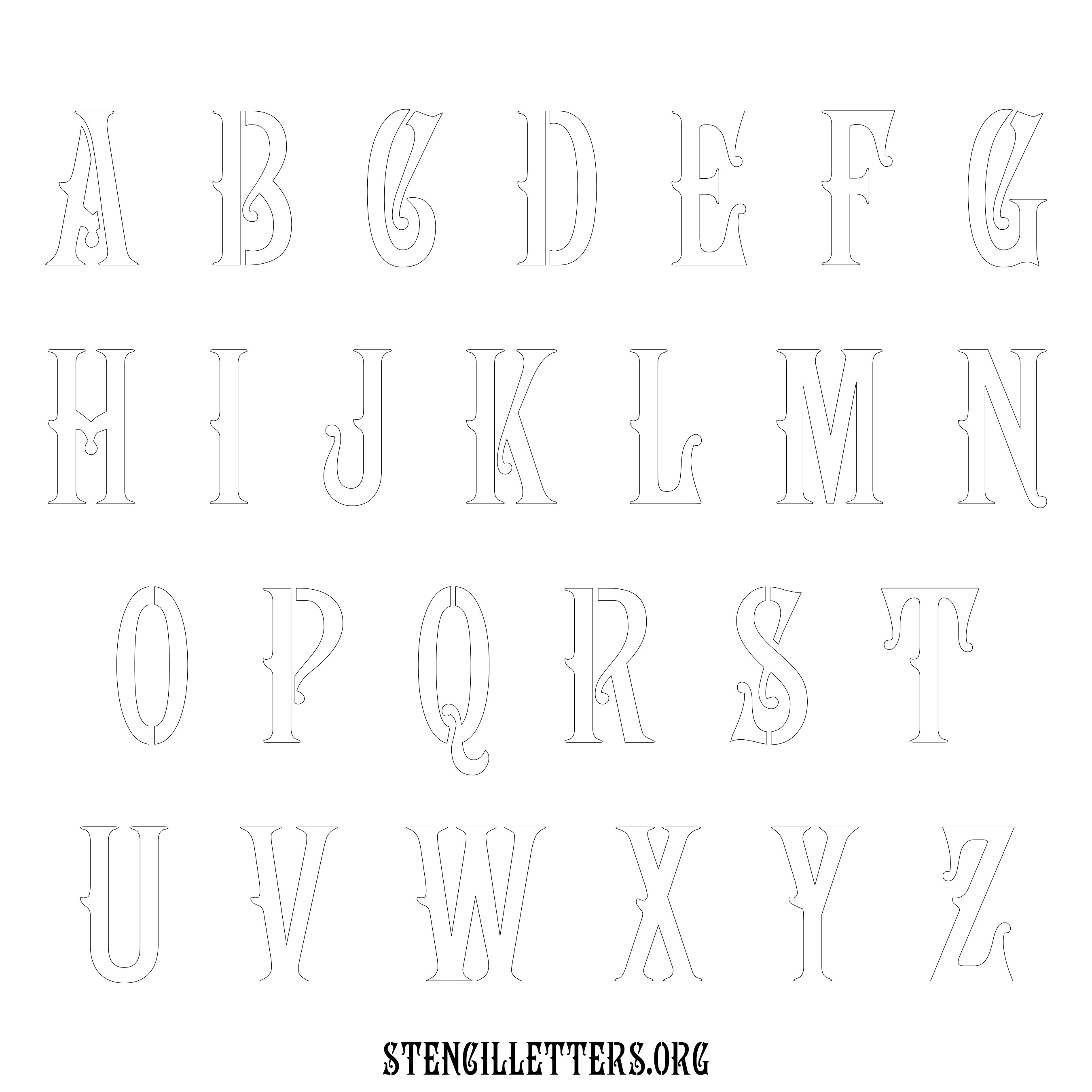 Stencil Design 192 Art Nouveau. Print these free uppercase letter stencils and make your own DIY templates for your stenciling projects. Available in high resolution printable sizes: 4 Inch, 5 Inch, 6 Inch, 7 Inch, 8 Inch, 9 Inch and 10 Inch.