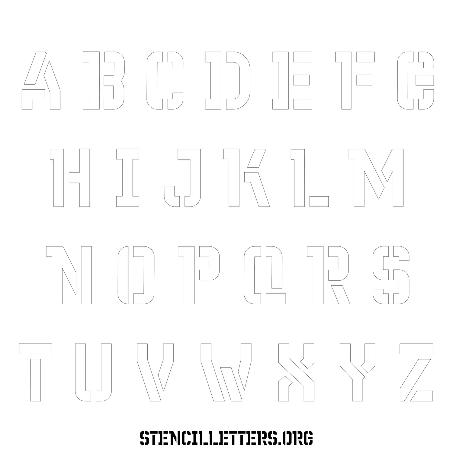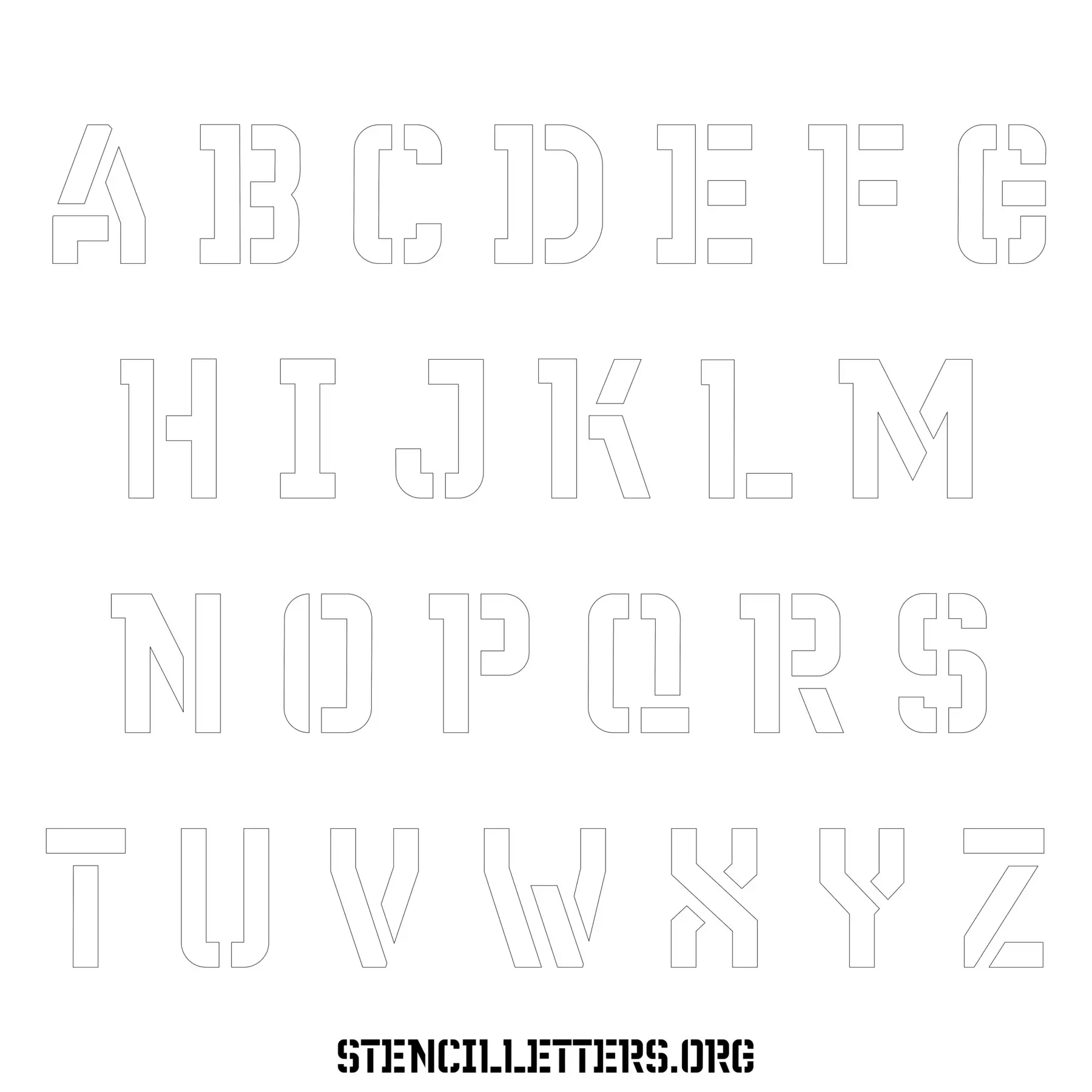 Stencil Design 230 Futuristic. Print these free uppercase letter stencils and make your own DIY templates for your stenciling projects. Available in high resolution printable sizes: 4 Inch, 5 Inch, 6 Inch, 7 Inch, 8 Inch, 9 Inch and 10 Inch.