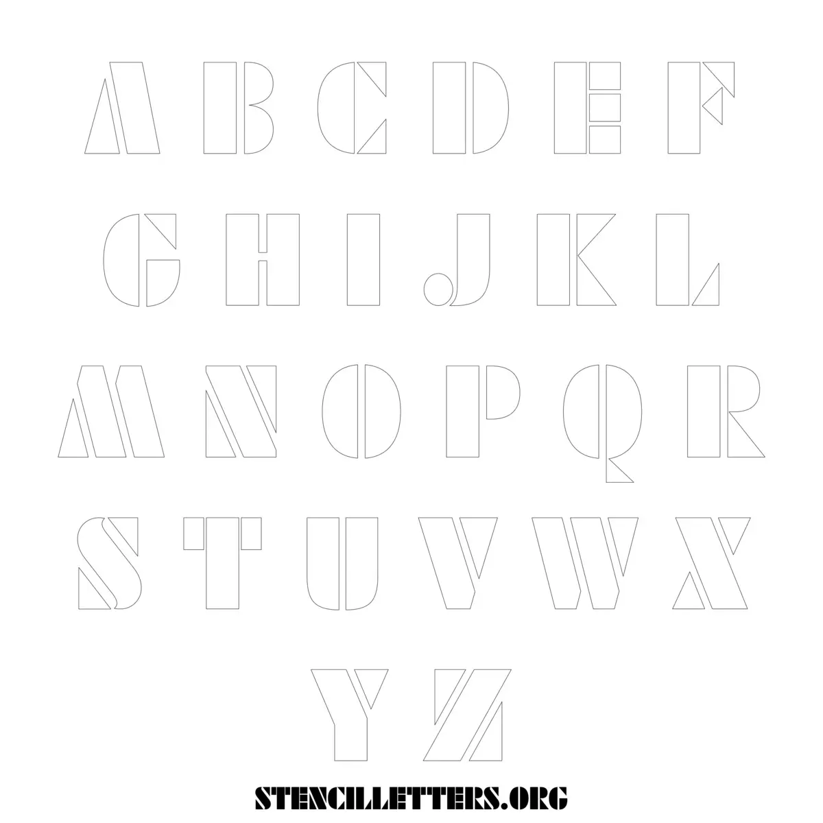 Stencil Design 252 Futuristic. Print these free uppercase letter stencils and make your own DIY templates for your stenciling projects. Available in high resolution printable sizes: 4 Inch, 5 Inch, 6 Inch, 7 Inch, 8 Inch, 9 Inch and 10 Inch.