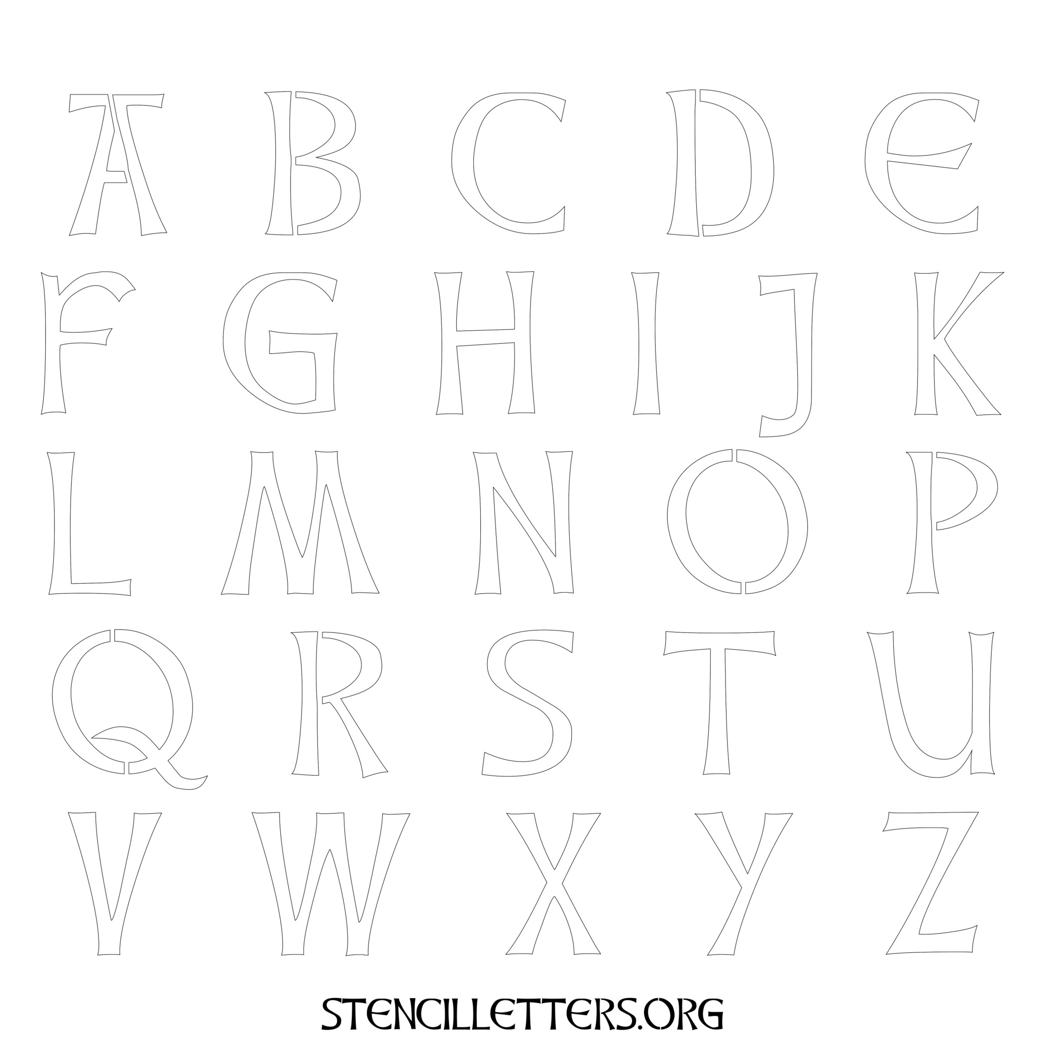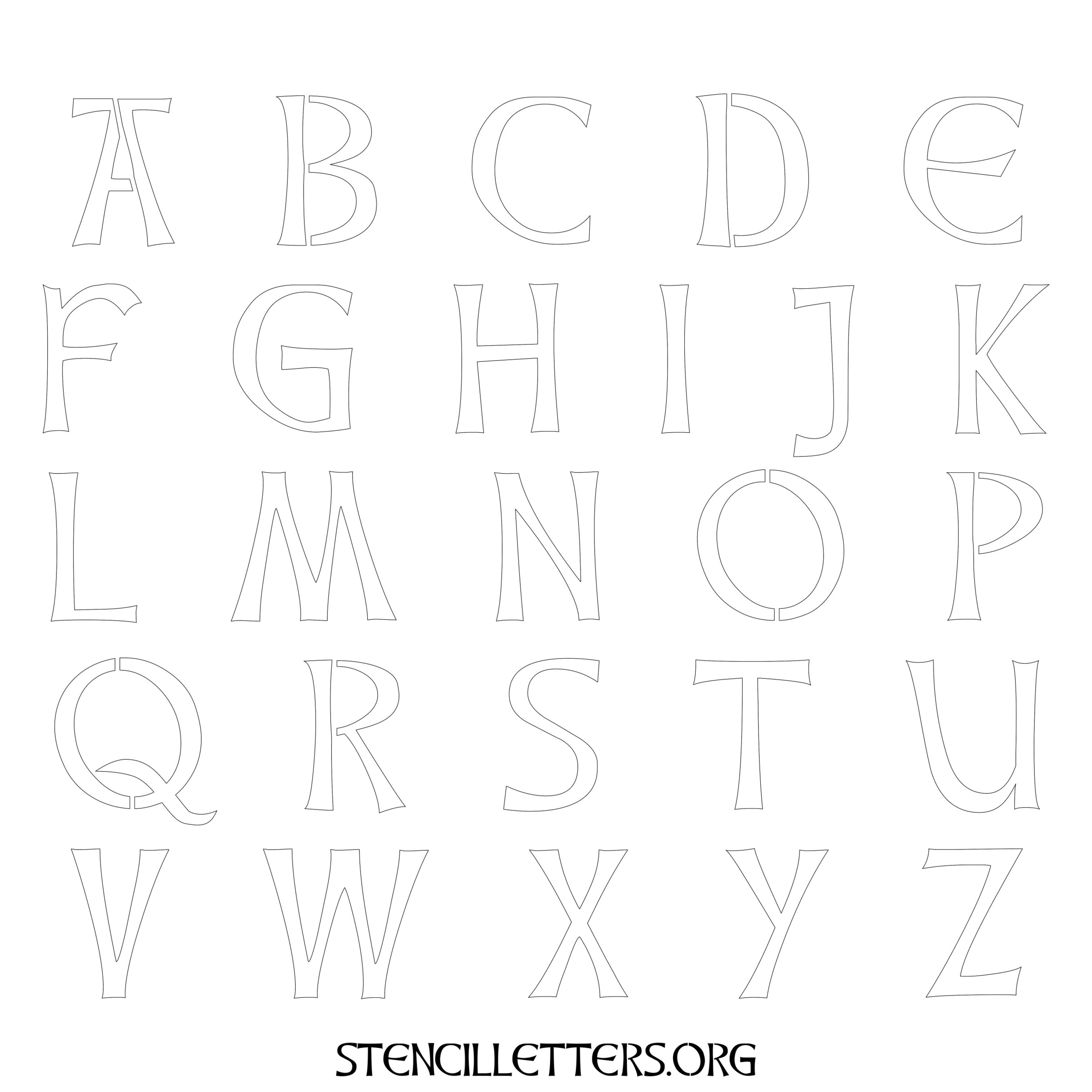 Stencil Design 29 Celtic. Print these free uppercase letter stencils and make your own DIY templates for your stenciling projects. Available in high resolution printable sizes: 4 Inch, 5 Inch, 6 Inch, 7 Inch, 8 Inch, 9 Inch and 10 Inch.