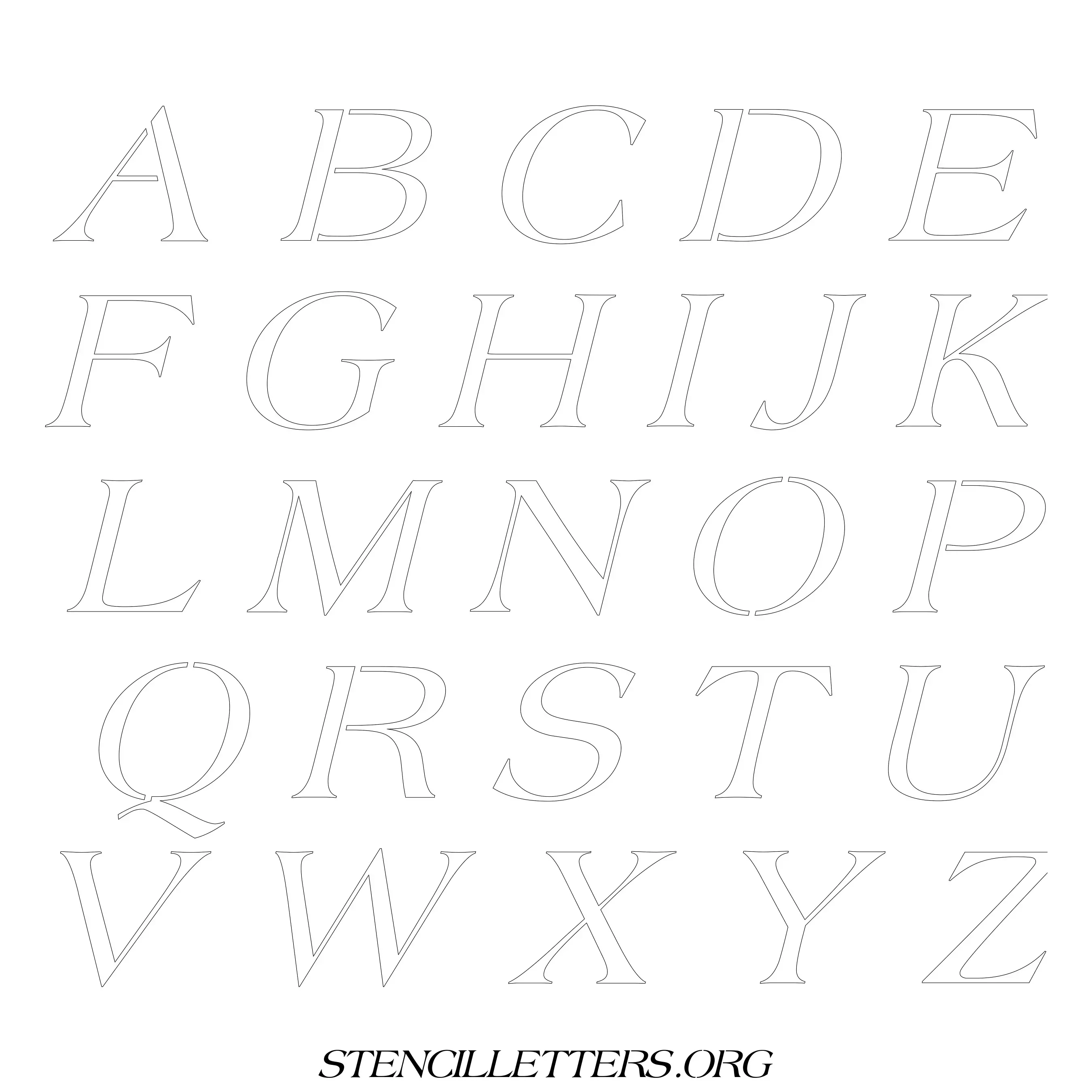 Printable Uppercase Alphabet Stencils - Design 37 Italic