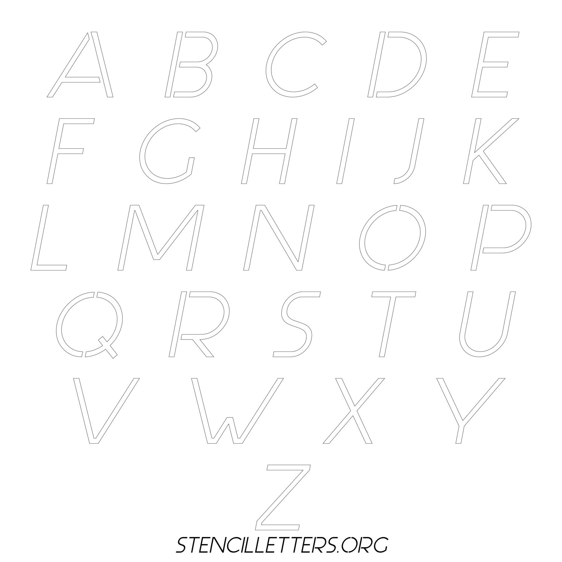 Printable Uppercase Alphabet Stencils - Design 44 Italic