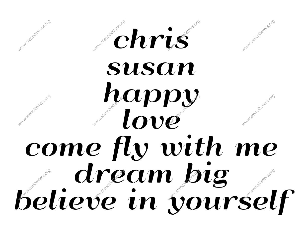 Art Deco Italic lowercase stencil Names, Words, Phrases samples