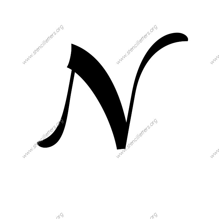 Art Deco Italic A to Z uppercase and lowercase letter stencils available in sizes from 1 inch up to 36 inches. This Art Deco Italic design is listed in the {Italic stencils} selection.