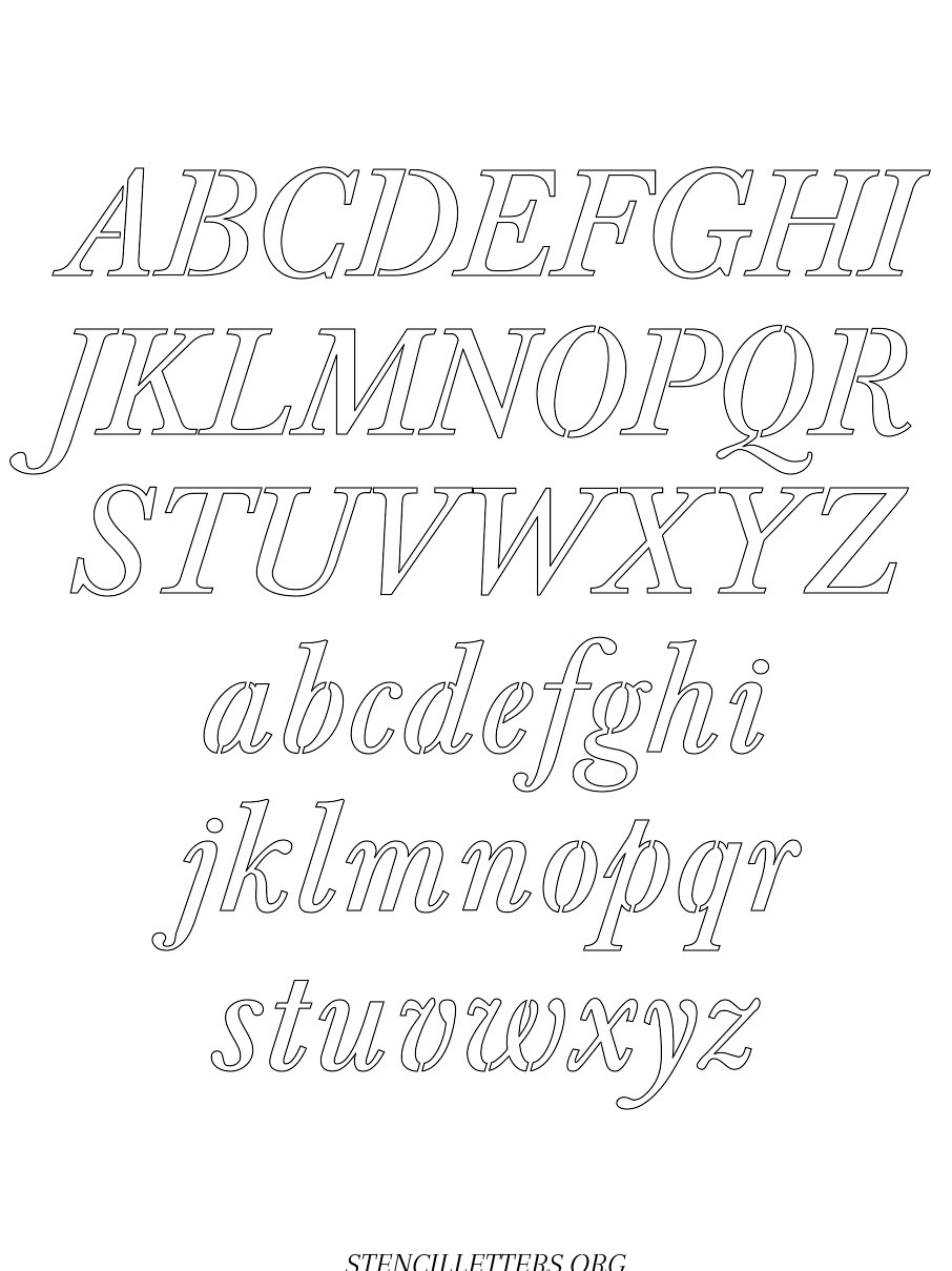 Formal Italic Capital A-Z, small a-z free stencil letter templates to print and cut out.