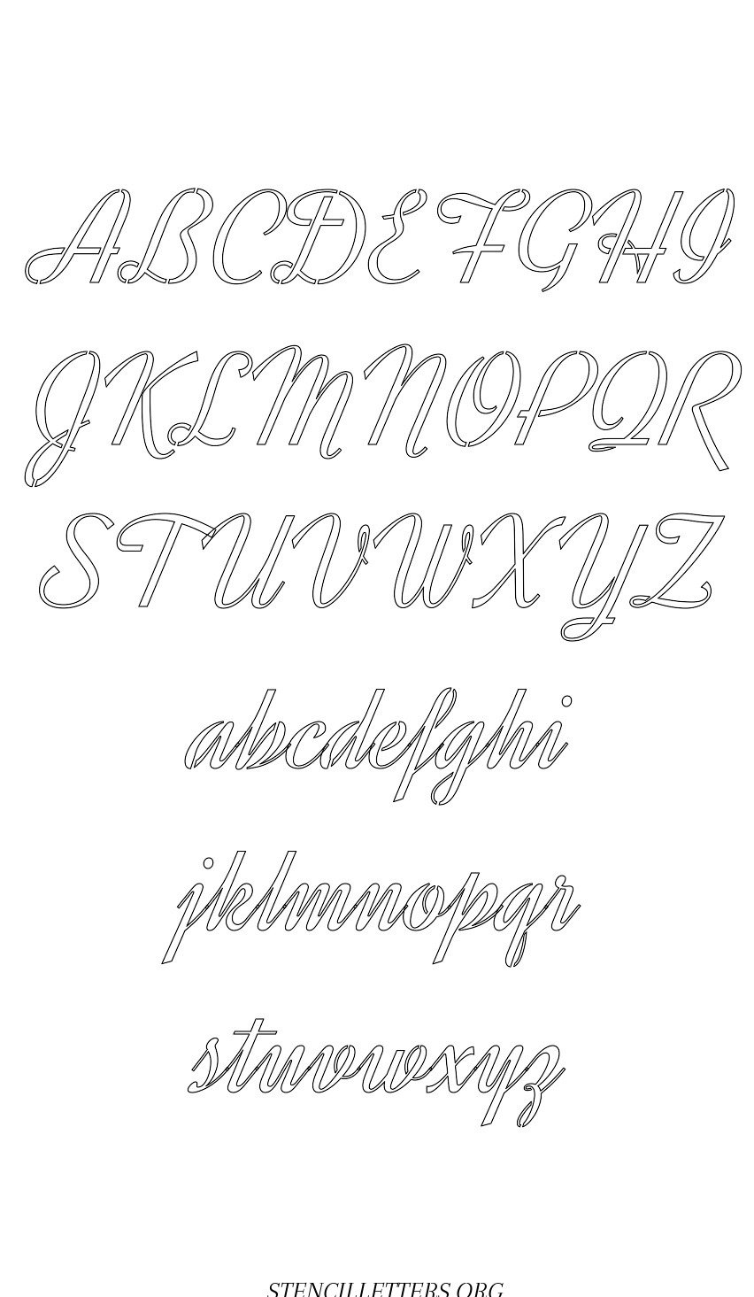 Retro Vintage Cursive free printable letter stencils in uppercase and lowercase with outline cutout alphabet letters.