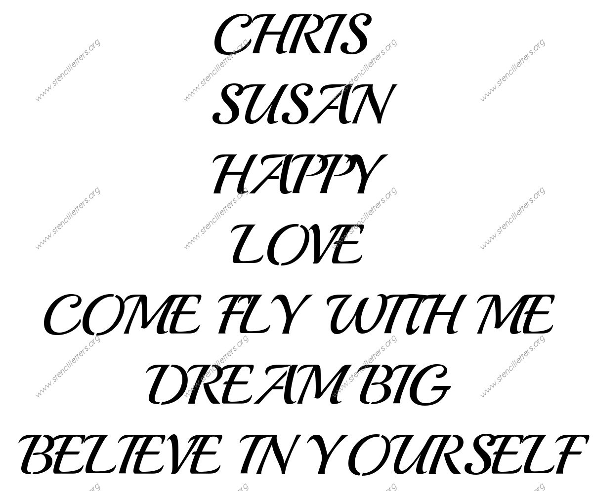 Vintage Calligraphy lowercase stencil Names, Words, Phrases samples